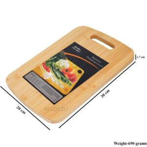 The image shows a bamboo chopping board from the brand JINJIALI – Golden Bambo. 🔍 Product Description: Material: Natural bamboo Color: Light wood tone (natural bamboo color) Shape: Rectangular with rounded corners Handle: Built-in slot-style handle for easy gripping and hanging ✅ Key Features: Eco-Friendly & Sustainable: Made from bamboo, which is a renewable resource…