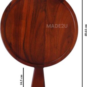 The image shows a round wooden serving or chopping board with a handle, often referred to as a pizza board, cheese board, or charcuterie board. 🧾 Product Description: Type: Round Wooden Serving/Chopping Board with Handle Material: Polished hardwood (likely Sheesham, Acacia, or Mango wood) Color: Deep reddish-brown with visible natural wood grain Design Features: Circular…