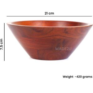 This image features a handcrafted wooden bowl, similar in style to the previous one you shared. Here are its notable features: 🪵 Design & Material Made from polished wood with a rich reddish-brown hue. The interior and exterior display natural wood grain patterns, enhancing its rustic yet elegant aesthetic. The finish is smooth and glossy,…