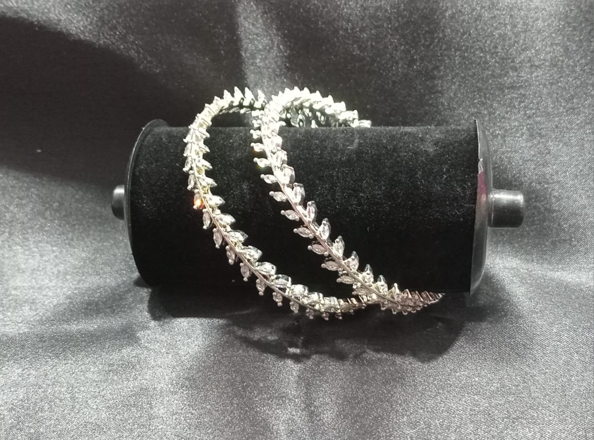 LEAF DESIGN WHITE COLOUR AD STONE BANGLES ( SET OF 2 )