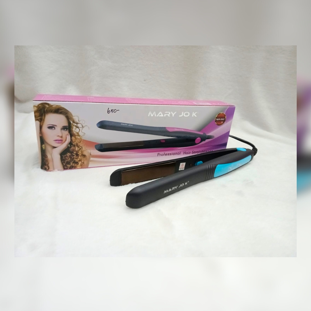 Discover the Mary Jo K Hair Straightener in Black & Blue, featuring ceramic plates for even heat and minimal damage. With a comfortable grip, swivel cord, and quick heating, it’s perfect for all hair types.
