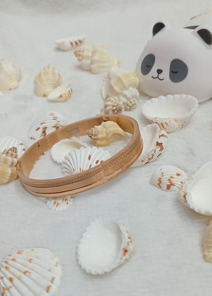 Material: The finish suggests rose gold plating over stainless steel or another durable metal.