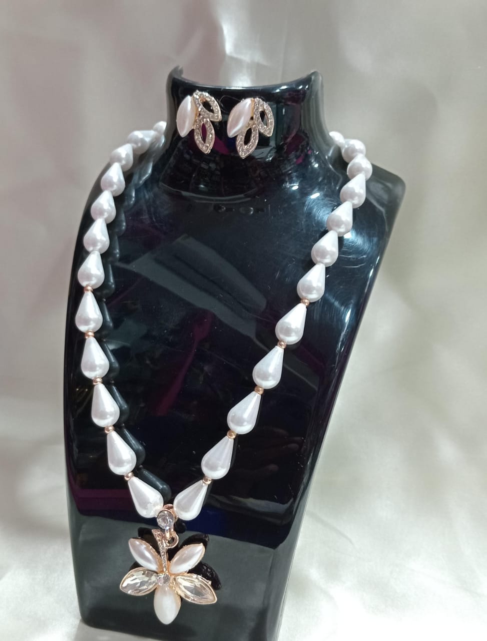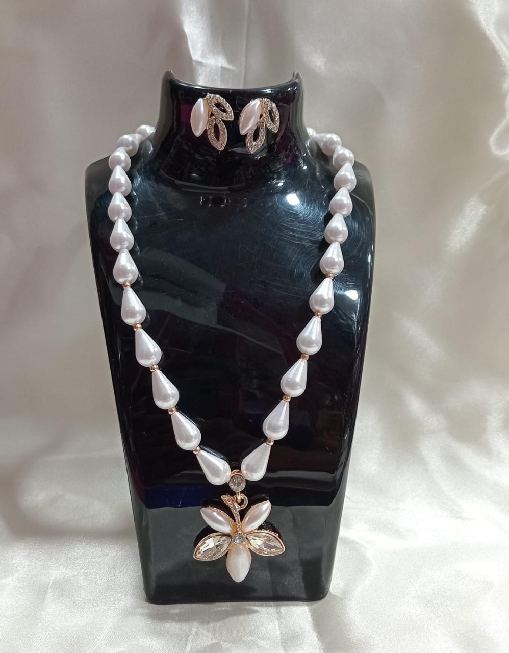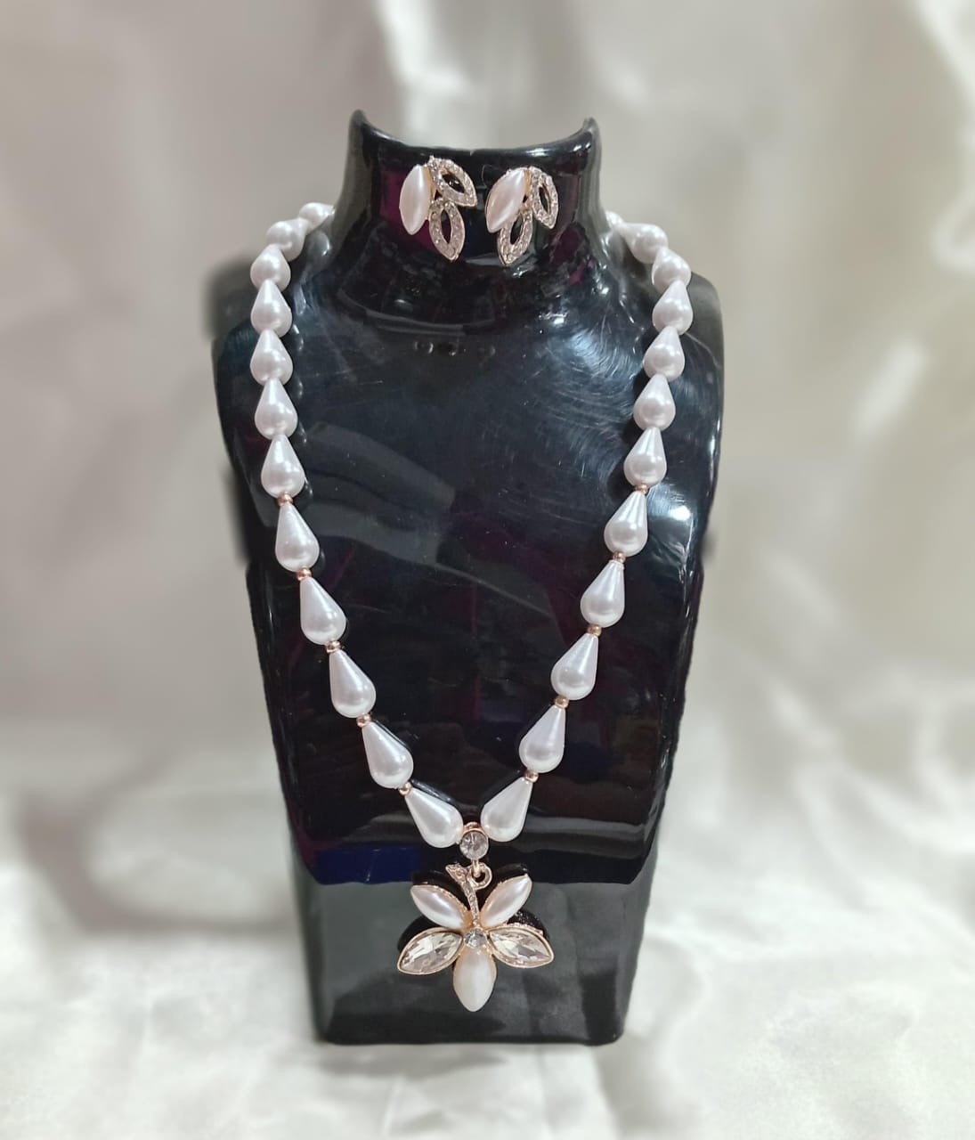 WHITE OVAL SHAPE PEARL SHAPE CHAIN WITH MATCHING EARING