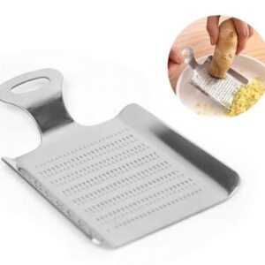 The image shows a stainless steel grater, specifically a fine ginger or garlic grater. Features: Material:Made from stainless steel, making it durable, rust-resistant, and easy to clean. Usage: This tool is perfect for quickly grating small amounts of ingredients directly into your cooking pot, pan, or bowl. It’s especially useful in Asian and Mediterranean cooking…