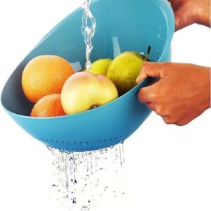 Design & Components: The bowl is spherical in shape, split into two halves: One half functions as a colander/strainer with small holes for draining water. The other half is a solid bowl, used for holding and collecting water. The two halves are joined together with a pivoting mechanism that allows the strainer half to rotate…